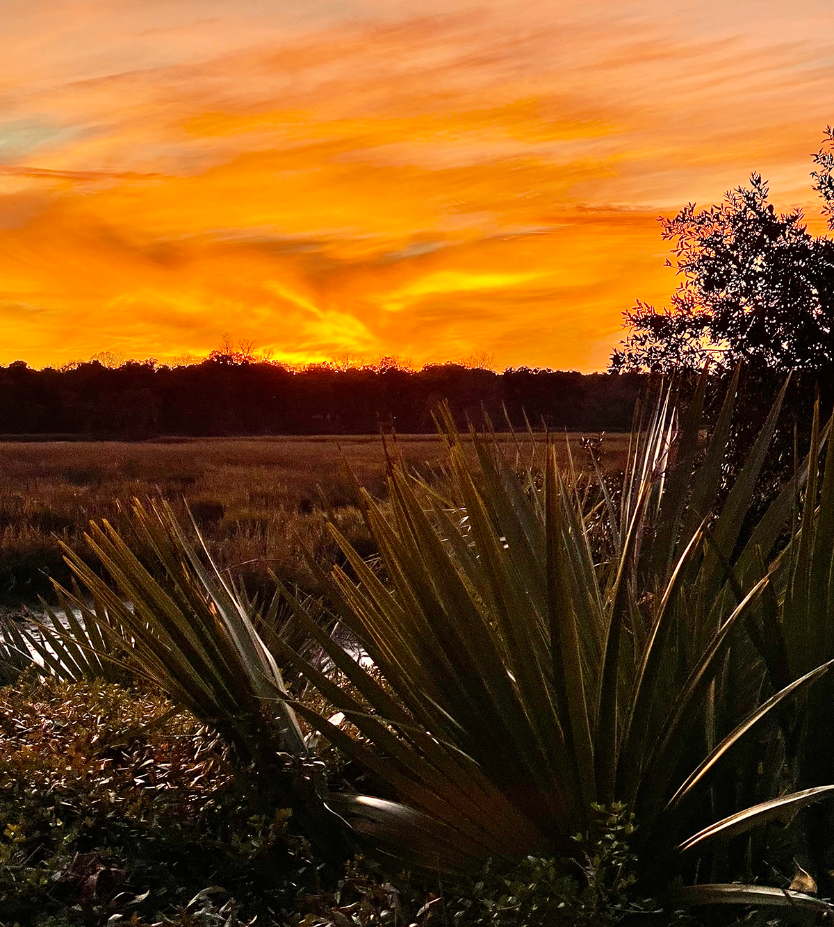 Miles of walking trails wind through maritime forests and salt marshes alive with native flora and fauna. Egrets stalk the creeks at dawn, while painted buntings flash like jewels through the palmettos. From sunrise over Huspah Creek to sunset behind the tidal marshes, nature is both backdrop and centerpiece.